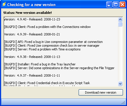 The main menu File > Updates > Check for updates option connects to the VisualCron web site i order to find if there is a later version available.