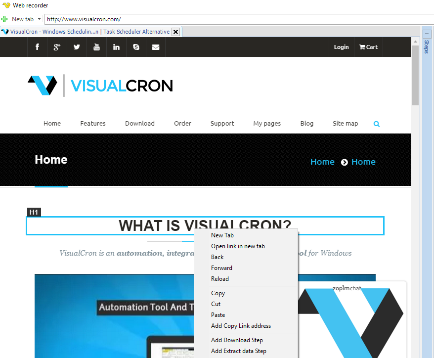 The extract data steps extracts an attribute of a page element. This attribute can be stored in either local Job Variable or global User Variable.
