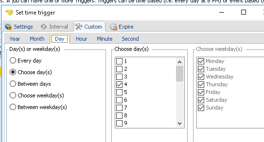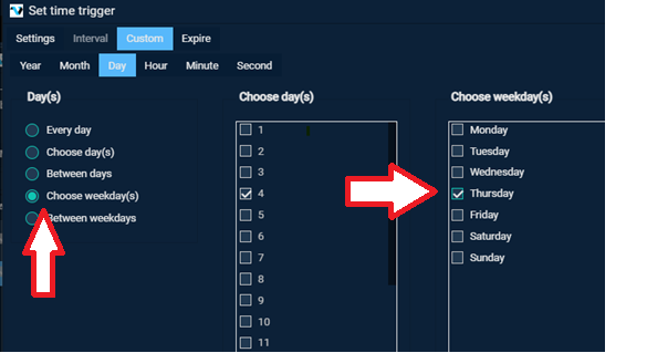 Also, selecting in the “Choose Days” section will automatically change the Weekdays section. That is not how the server UI works. (Note – the API trigger did show the 4th, the three days selected above are the changes we want to make)
