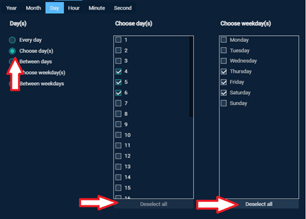 Will disable “Deselect All” for the Choose Days Section but enable “Deselect All” for “Choose Weekdays”