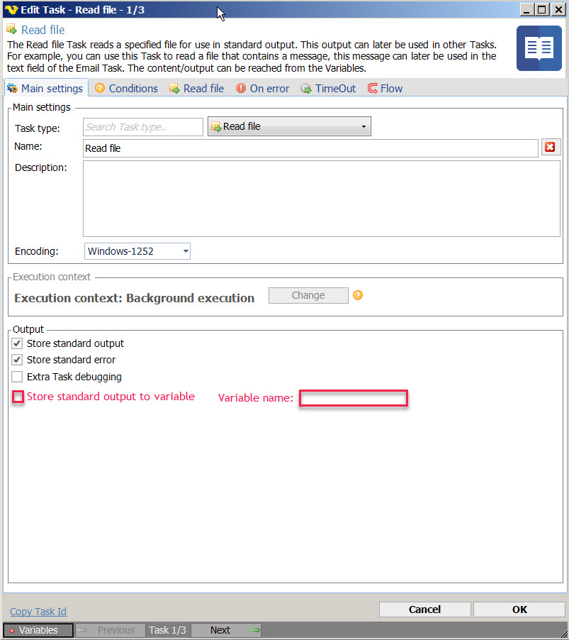 This may have already been asked for (?), but can you consider an option to store standard output to a variable within the task generating the output.