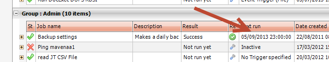 In the attached screenshots you can see the Client shows a description of the Trigger state in the column 'Next Run', however in the report it shows a Date/Time stamp, which is largely irrelevant for an event trigger.