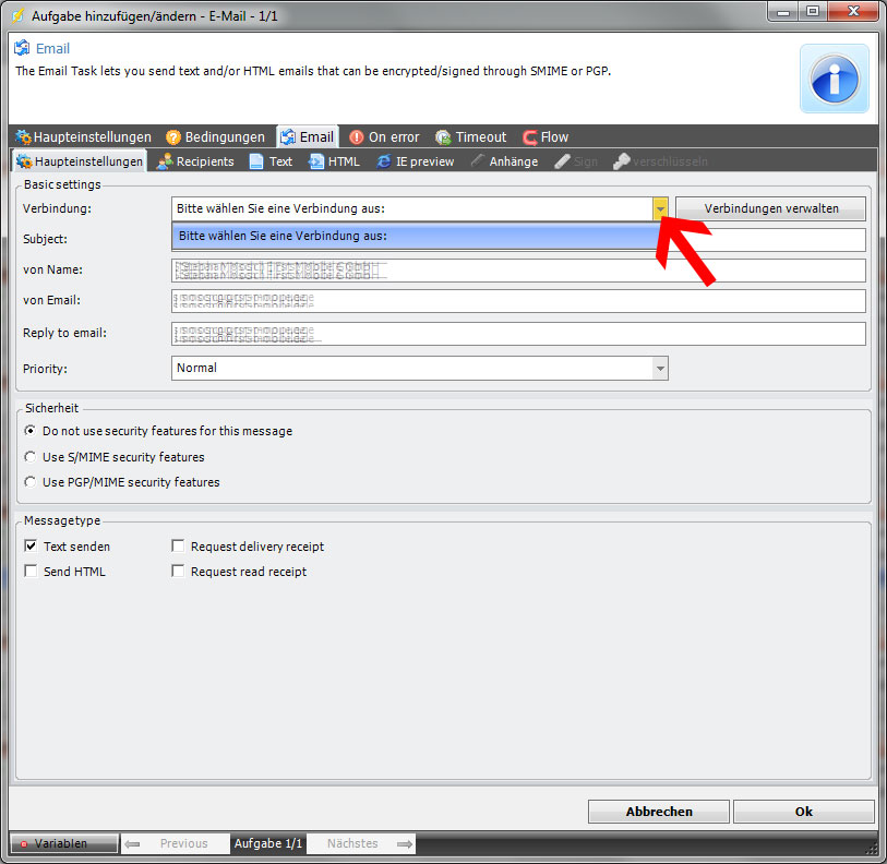 In the drop down menu appears nothing to me, even though I have set up many connections. Click on button "Manage Connections" shows a blank window. But the window is empty because in "Protocol Type" is a undetectable filter is set. I click on "Clear filter", everything is displayed. I close the window "Manage Connections", the filter becomes active again and I can not select a connection.