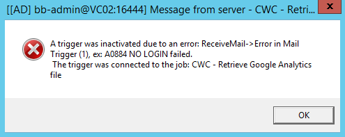 I have run into an issue where any job that is using an Email Trigger to watch an Office 365 inbox continuously throws a message that the trigger has been inactivated. I have attached two examples of the error message in question. It has become such an issue that we have had to set up an entirely new job to re-enable deactivated triggers every hour. While this is a work-around, I was wondering if there might be something incorrect with my Connection entry, or if VisualCron has trouble with Office 365 inboxes.