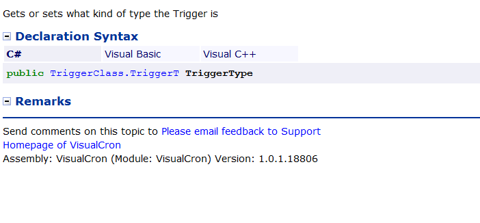 I'm a able to create a Job and add it, but I cannot create a Trigger, because I dont't know what to set for Options for the TriggerType. The help file is missing a lot of information: