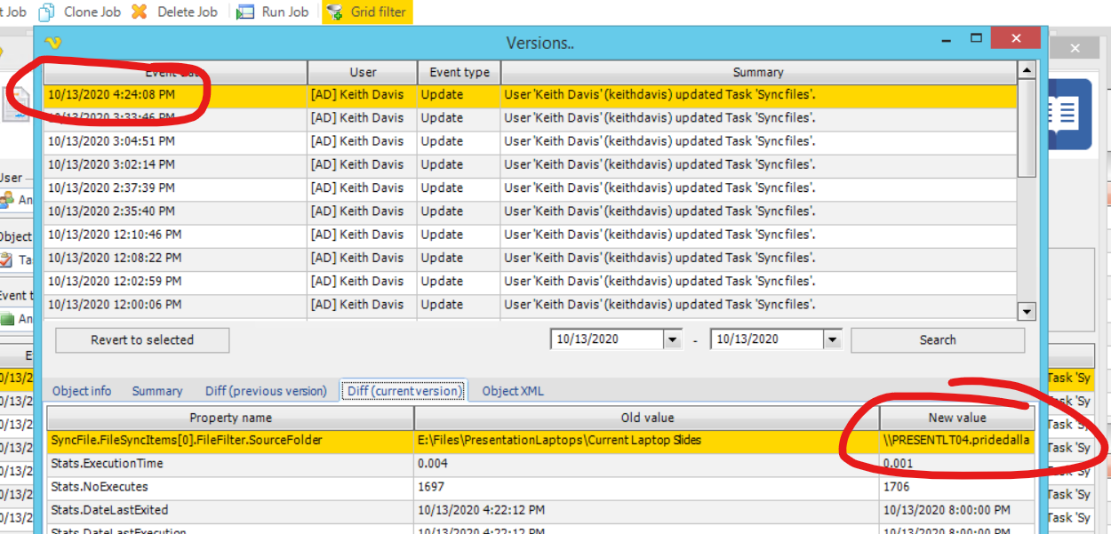 Happened again. Also, the Audit log makes no sense. This says to me that on 10/13 at 10PM I changed the value to