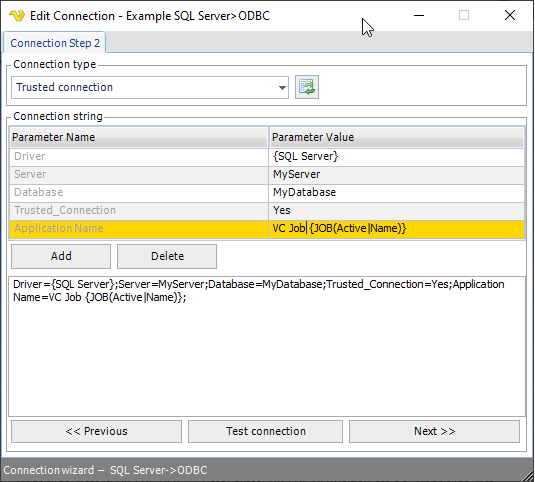 I would like to be able to specify Application Name in the SQL Server connection string. Specifically I would like it if the application name could include the name of the running job. This way SQL Server logs would show the specific job making the SQL call instead of just showing "Visual Cron".