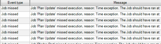 What happens now in v9.6.5 that did not happen in 9.4.5 is that I get a "Missed job" in the event log.