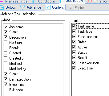 The content of the report will be a combination of Job information and Task information. Choose what you think is best