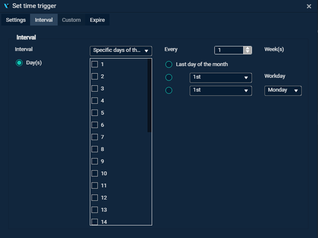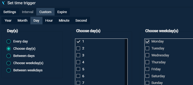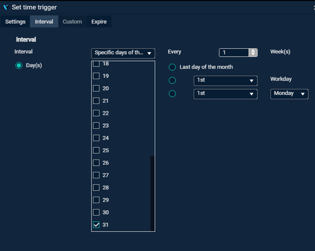 If I choose any of the first 7 days then a corresponding check mark automatically appears on the equivalent day. So, for example, if I choose the 1st of the month then Monday is Checked. If I choose the 5th then Friday is checked. I am not marking Monday or Friday I am marking the 1st or the 5th and the check mark for Monday and Friday appear.