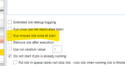 I have also tried stopping the server service. Your documentation indicates that when this occurs that missed jobs will run. This works. However, there is another problem with this scenario. In my test when I stopped the service it also abrubtly stopped any jobs that were currently running. Therefore this solution doesn't work either.