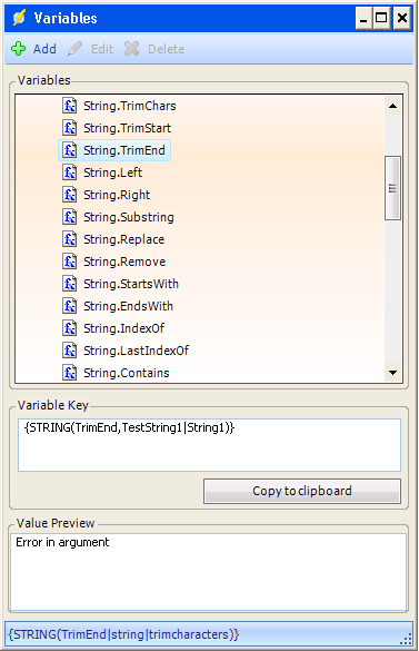 I was browsing the new variables in version 5.5.5 and I noticed the String.TrimEnd variable throws an error when you select it in the window. Please see attached picture. Not a problem specifically for me but I wanted you to be aware of it.