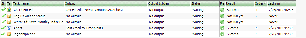 - if file download succeeded, goto the "Abort" task which sends an email and then writes a "completion" message to a file (tasks 4 and 5)