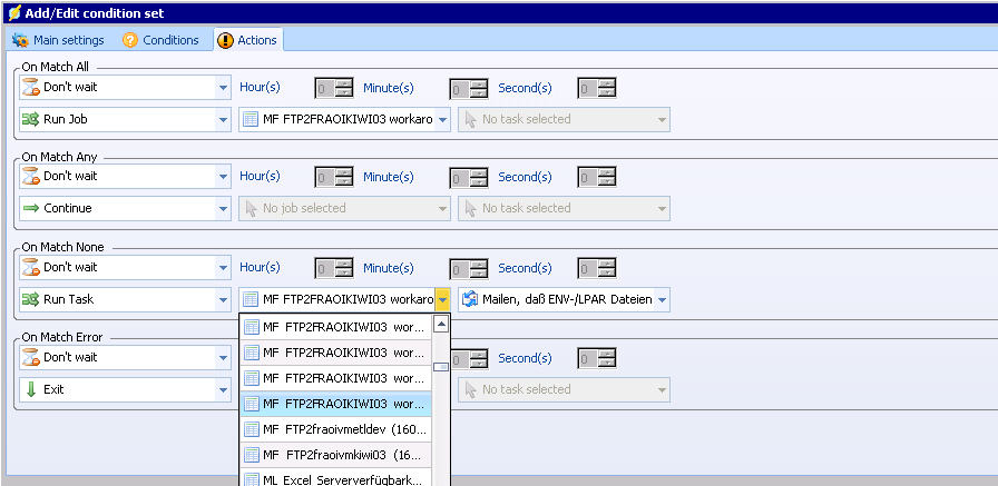 I want to send a mail when file "LPAR_ENV_trigger.txt" is not found at 8:20 pm. I set the condition for this file and the action "On Match None" that the Emailtask in the job should be executed. SMTP options were settled.