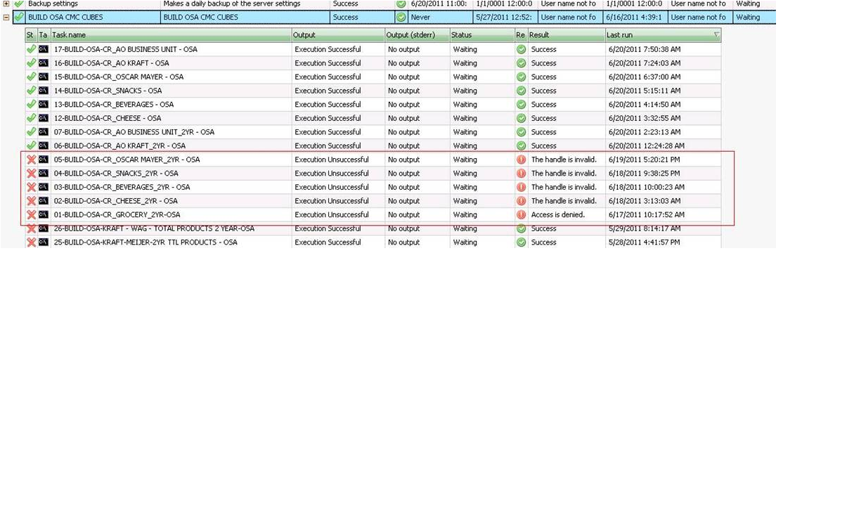 6/18/2011 9:03:14 AM Err Task "02-BUILD-OSA-CR_CHEESE_2YR - OSA" exited with code: 6(The handle is invalid.)