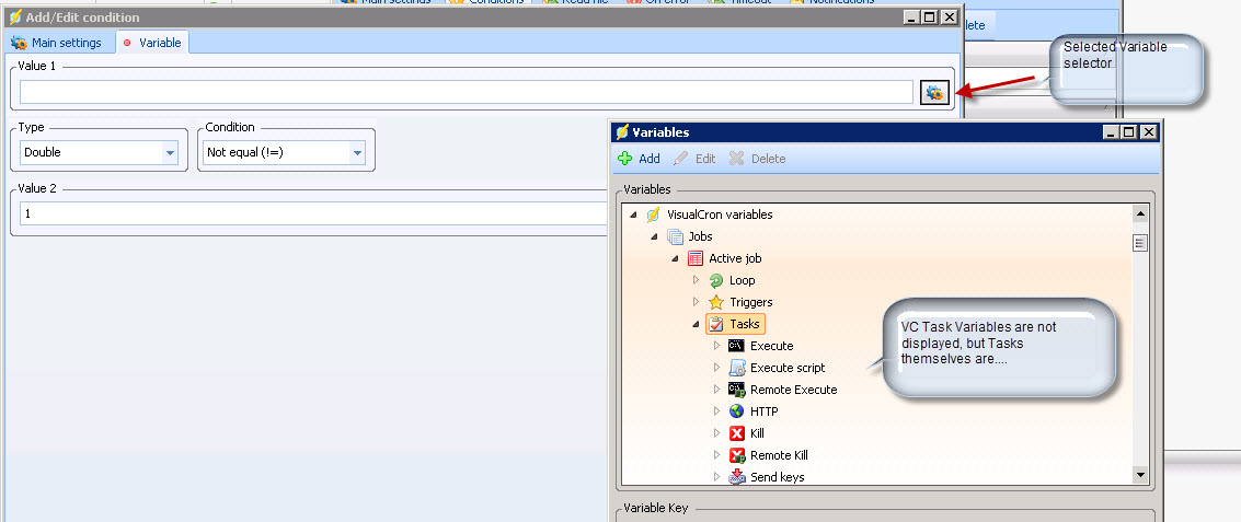 I have come across a problem when selecting Task variables in a condition. Instead of displaying task variables in the variable dialogue, it is displaying a list of tasks themselves. The attached screen shot shows what is happening.