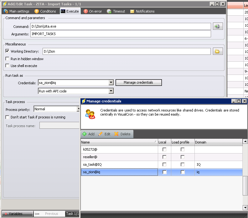 Have you set "With profile" option on the Execute Task?
