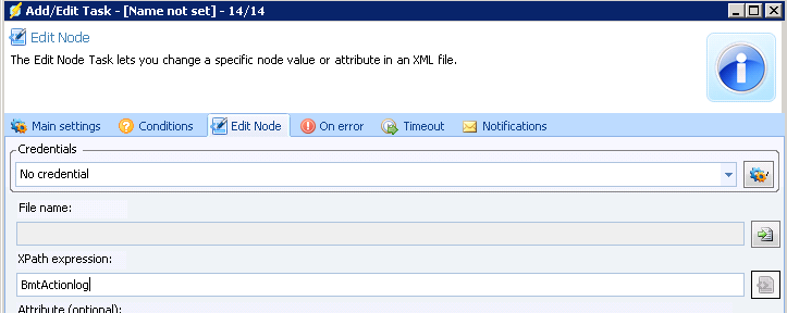 The input box of FILE NAME within the EDIT NODE component is to mention the xml file, which is grey as color on default. And variable usage to enter is impossible in this box as well. When I go to a location to point to the correct xml file via the browser on the right side next to the box, the program CRASHES!!