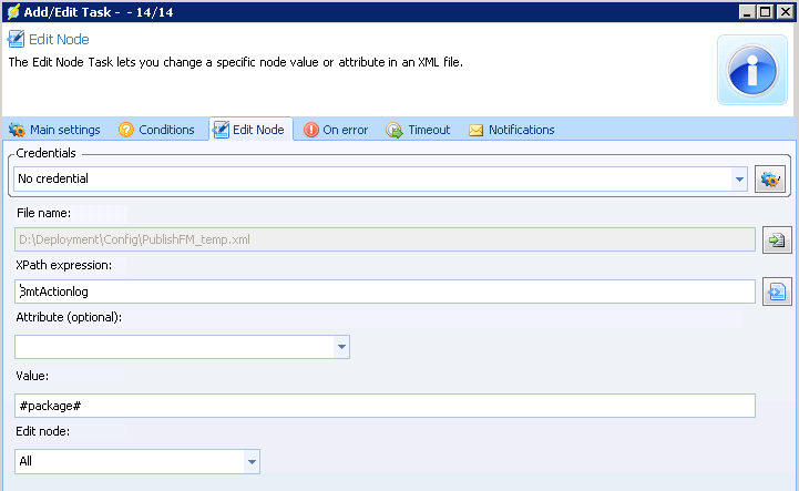 I would like to change the #package# string within the XML file attached when using the EDIT NODE from the XML Task menu.