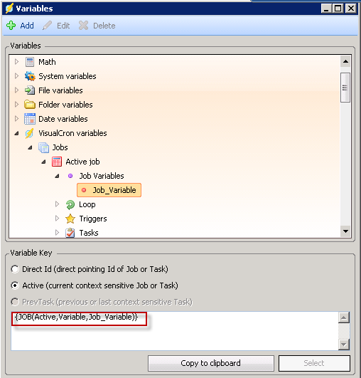 {JOB(Active,Variable,Job_Variable)} which works fine.