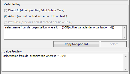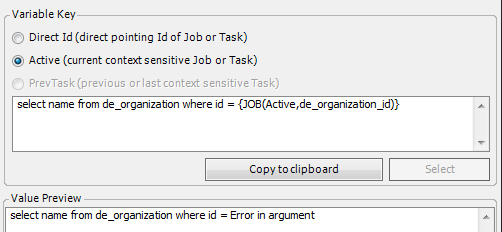 Yes, I was wrong about {JOB(Active,keyName)}. There is a bug in 6.2.2. which tells in the Job Variables window that it should be in this format while it should really be: {JOB(Active,Variable,keyName)}.