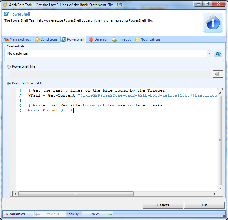 $Tail = Get-Content "{TRIGGER(d9a226ae-0ad2-42fb-b518-1efd5af13bf7|LastTrigger|File.Result.FullPath)}" | Select-Object -Last 3
