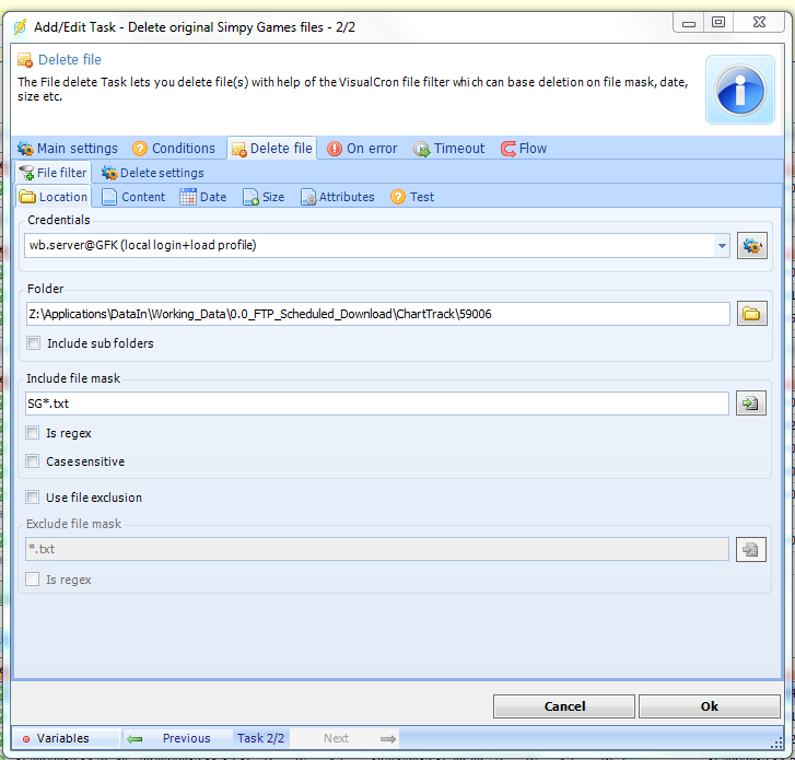 However, when the task is run on its own it does delete them.