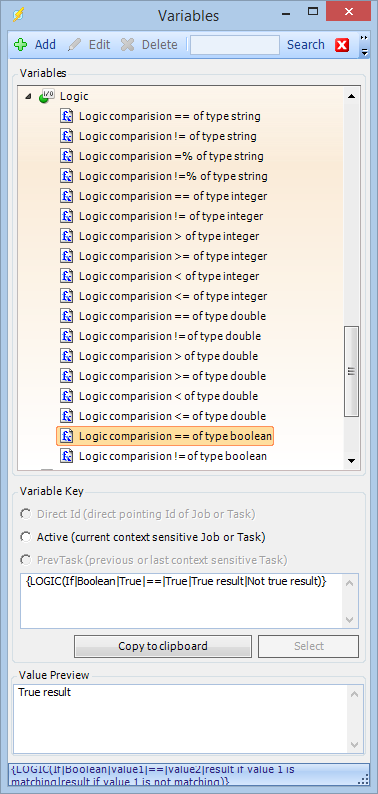 We would like to have a Boolean variable type added (currently only String, Int32 and Double). At the moment we are using a String and then checking against the value 'True' but that is not ideal.