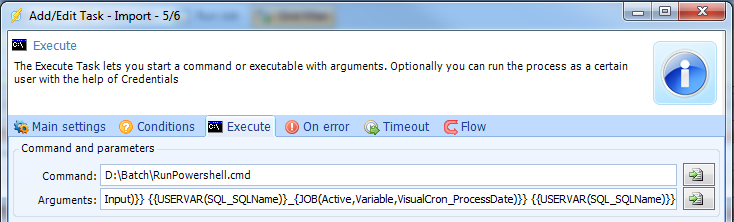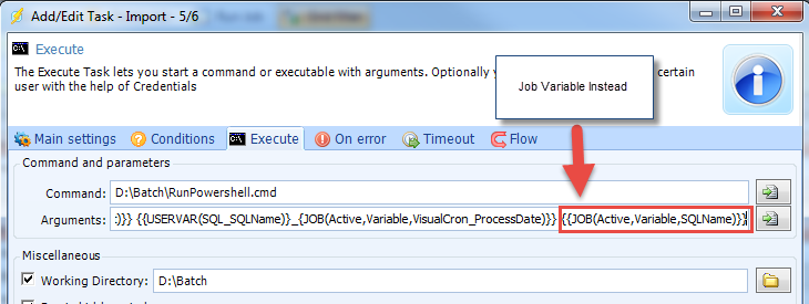 Note the other Job Variable in the Arguments {JOB(Active,Variable,VisualCron_ProcessDate)}