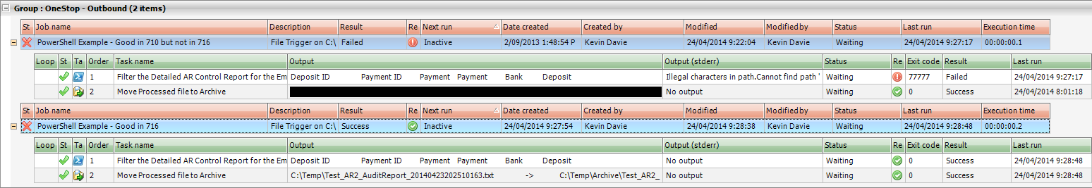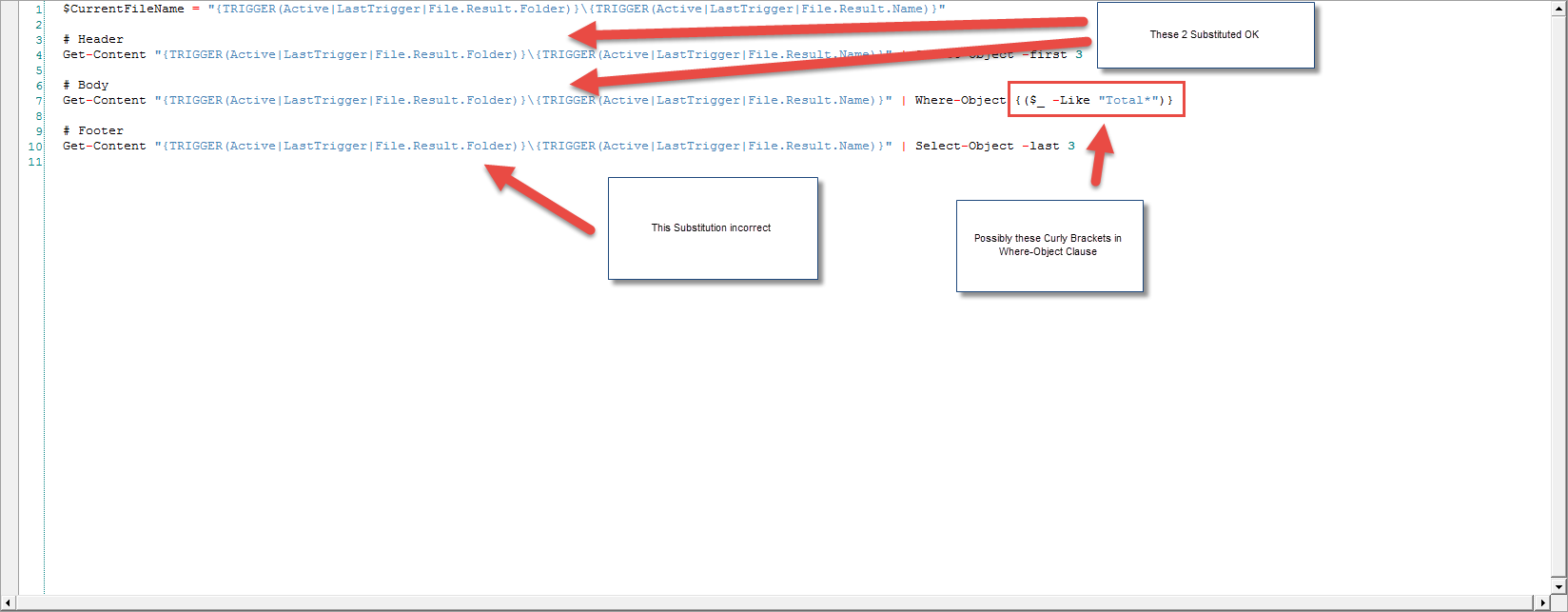 Scenario 2 - PowerShell Script Text with Trigger VariablesHave included a VCSettings.zip with 2 Job Examples (1 with each) and a second zip with the 2 Powershells and a Sample File that should allow you to replicate the issue in 7.1.6 on a local server / client