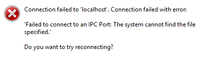 ‘Failed to connect to an IPC Port: the system cannot find the file specified.’