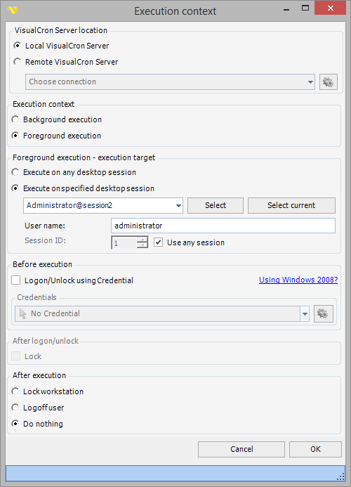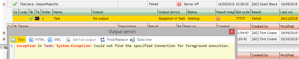 Recently, we noticed that our tasks were failing with error "Exception in Task: System.Exception: Could not find the specified Connection for Foreground execution.". This was after we logged out the user under which our tasks run.