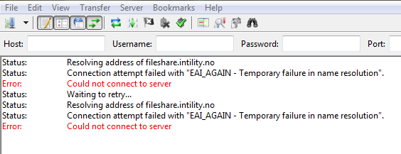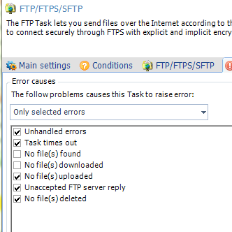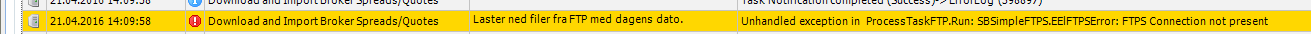 We just had an excpetion where FTP connection fails, but we do net get any error message. It's correct that the FTP should fail (ie this is not caused by VisualCron), but we would like an error message to be displayed. We are running VC 8.0.4. Here is some info: