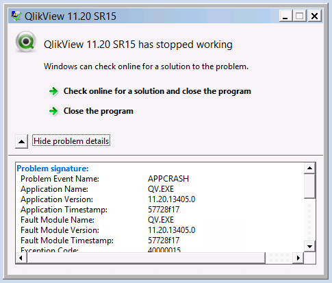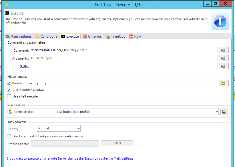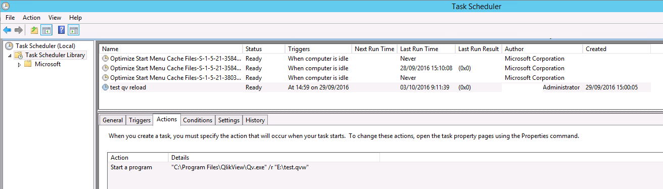 In the current infrastructure W2008, everything runs correctly without incidents. But, after performing a lot of tests in the W2012 infrastructure, all tasks launch qv.exe (QlikView Desktop process) and crash process. We configure the VisualCron task with administrator account and roles.