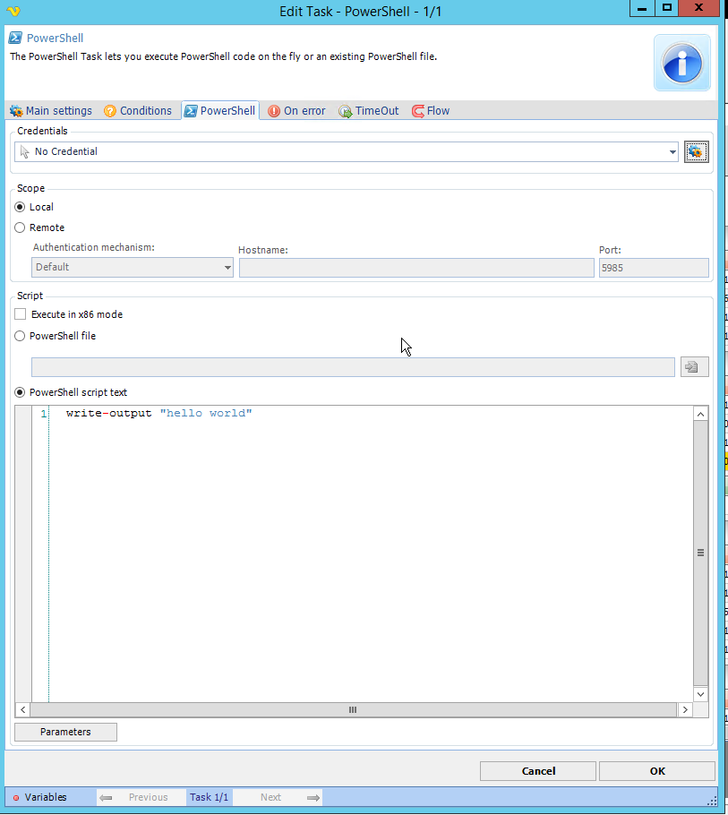 We are having issues with PowerShell tasks getting locked. Looking at the underlying PID, you can see that it is held up on a WerFault exception. Once the task PID is killed the following error is being displayed. I have seen this issue on two different server versions, 8.1.2 and 8.2.1. Any assistance with the issue would be appreciated.