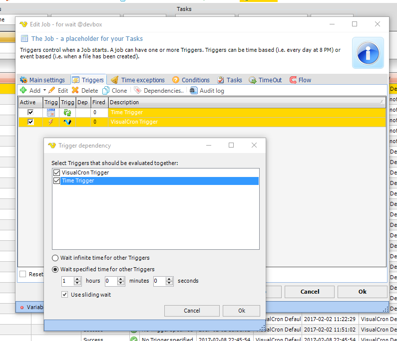 - VisualCron Trigger type to watch for completion of Job A