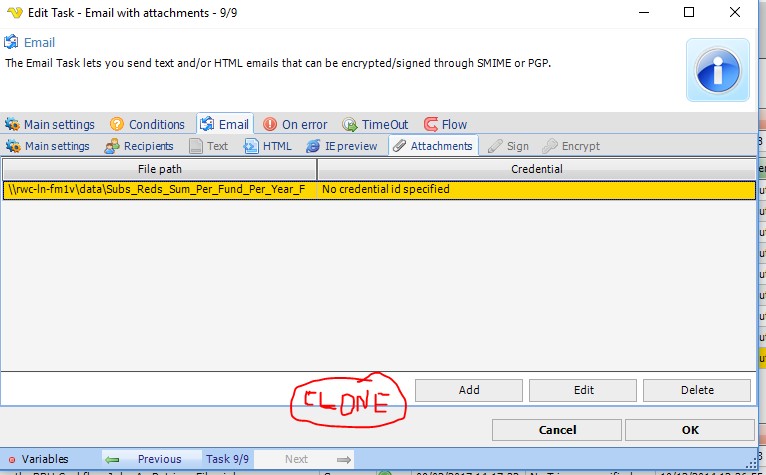 If we want to send an email with several similar attachments we need to create each one from scratch, it would be nice if there was a clone option (see attached screenshot)