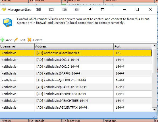 Please, at least make this thing sorted by alpha or something or allow manual sort. I have a long list of servers that I connect to and I have to just scroll up and down until I find it. For some reason, the "connect to server" list is sorted by alpha, but the other 2 lists, "manage servers" and "select server" are not.