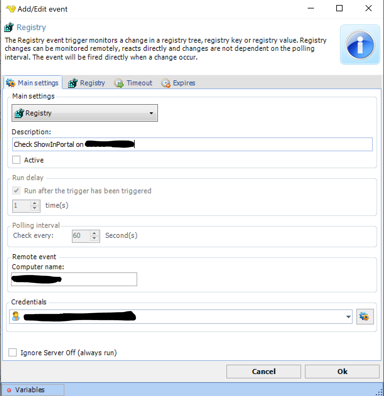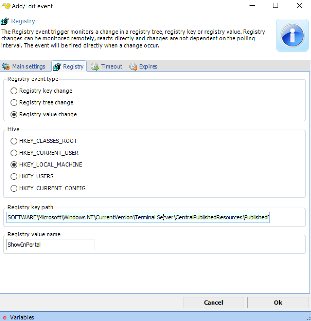 I am setting up a event trigger to watch for registry changes on a remote server.