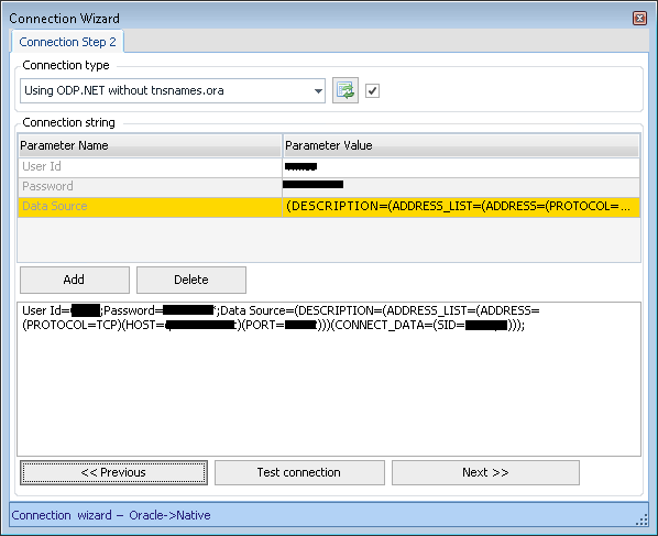 I find it odd that it claims to be trying to connect to an SQL Server database, when I've clearly stated that it's an Oracle database.