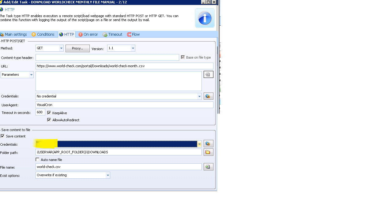 Maybe you can upgrade VisualCron - your version seem very old. Upgrading would help debugging.