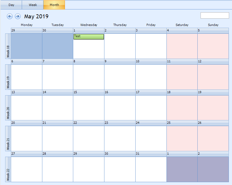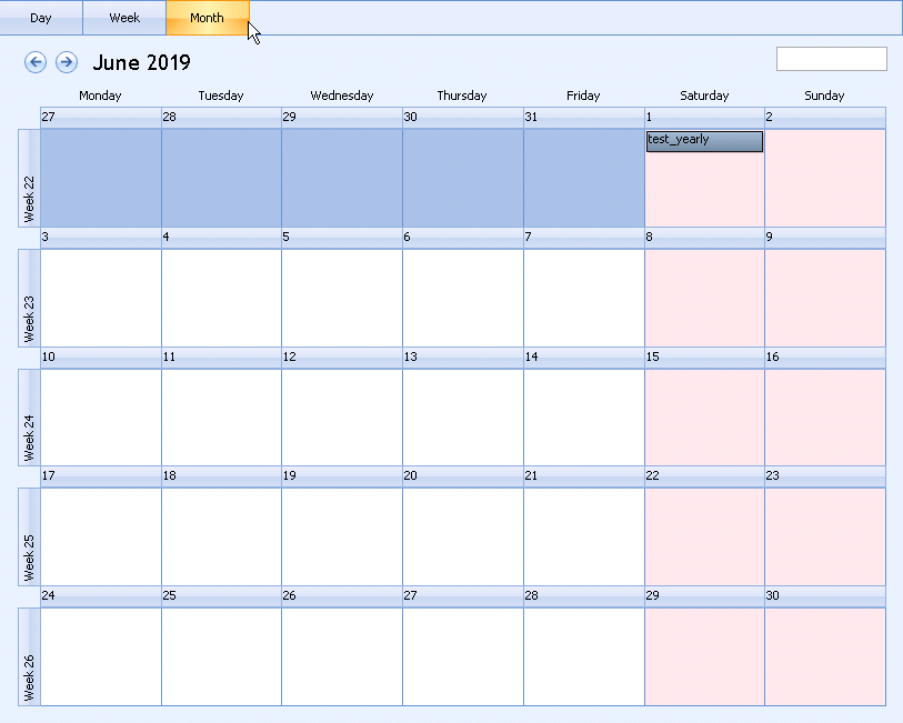 6: Select month view and verify that the job shows up at MAY the first 2018