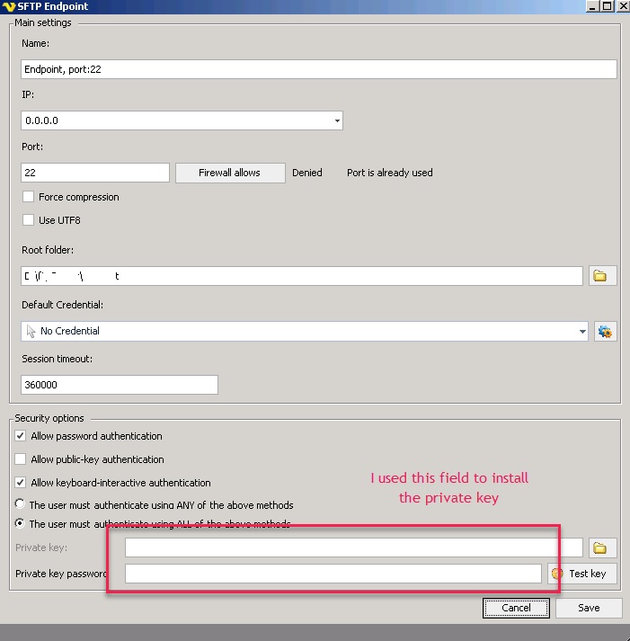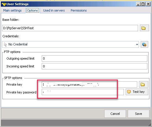 2. Whats the purpose of the private key field in the SFTP options at the User Settings screen:
