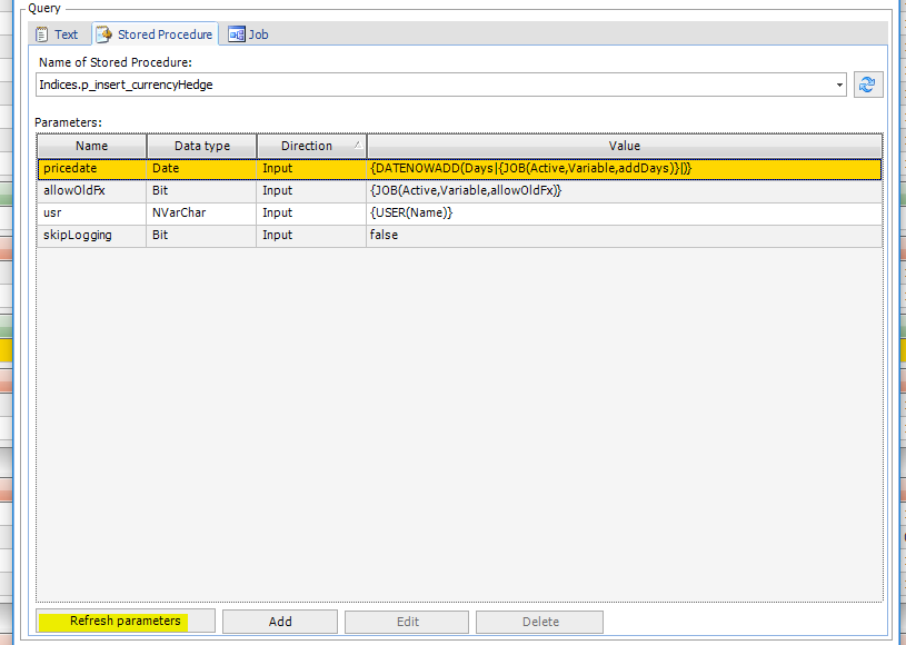 1) Sql task, stored procs: When we click 'Refresh parameters', the existing values are cleared. I would like the functionality that the values are kept, if the parameter name is the same. Sometimes I add a new parameter, or remove one, and it would be nice to not have to repopulate all the parameters again