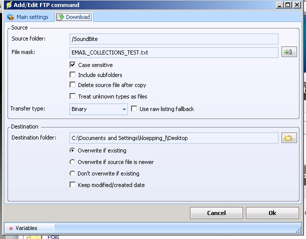 We are evaluating VisualCron. Trying to connect to an internal server and download a file does nto work. Any ideas?