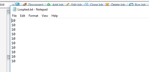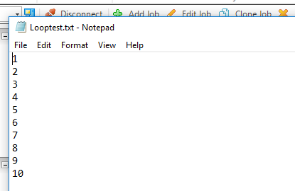 Then create a for loop that loops say 10 times. Increment the variable by 1 in each loop cycle. Then create a task that writes to file (or whatever you want)