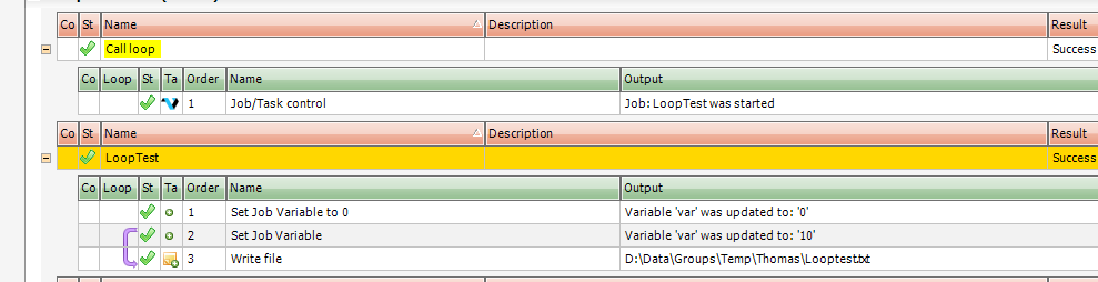 1) Create a job like in the image below. It has a job variable called 'var'. Set it to zero. Start with a task that sets it to zero (in case you are running test several times).