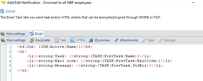 Note that if you have jobs where a task can fail, and that means the job fails, but the job doesn't STOP at the failed task (I have some of these), a notification on failure at the job level will still report the previous task to be the last one that ran, which is no longer the one that failed. I have a few notifications that can be a little confusing because of this, and I really need to fix that, but because they only go to me I haven't gotten around to it yet.