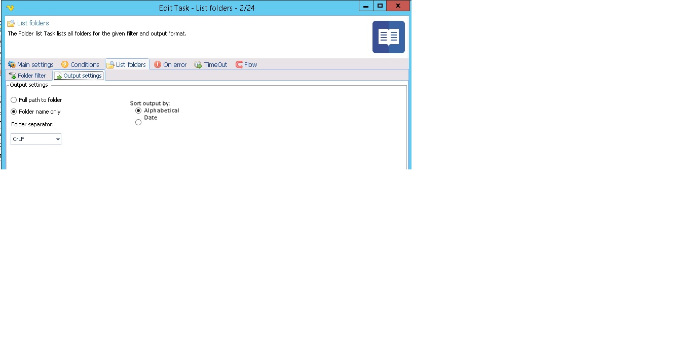 Can you add an option to sort the output of the List folders task by "alphabetical" or "date"