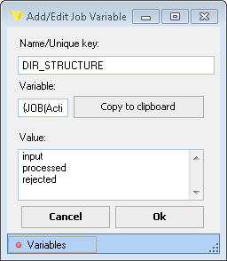 • I created a Job-Variable containing 3 strings (dir1, dir2, and dir3) separated by New-line char